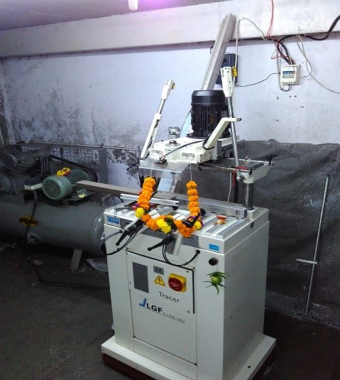 3+1 axes CNC Machining Centre able to work 5 profile faces front, top rear faces and right & left end of the profile with blade.
