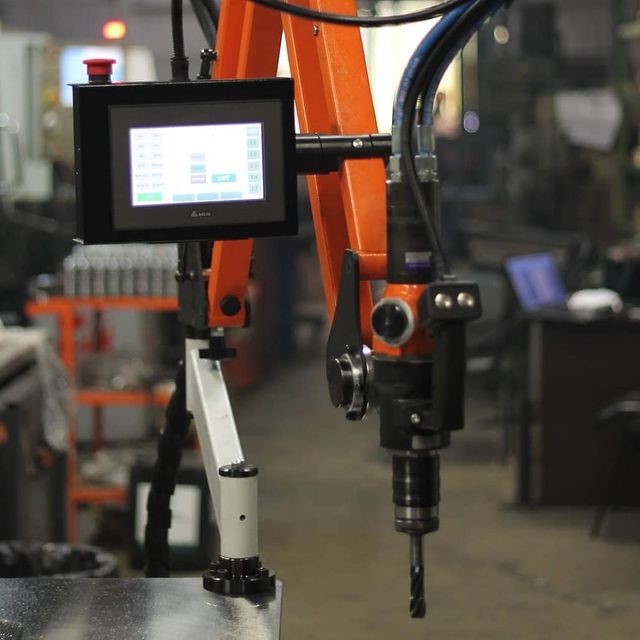 Using these tapping arms ensures we tap perfectly perpendicular to the work piece.
